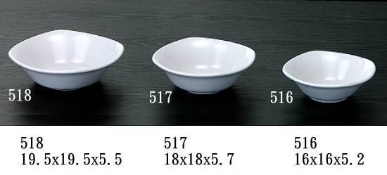 利泰實業廠 - 美耐皿方形湯碗 / 美耐皿盤子 / 美耐皿餐盤 / 美耐皿餐具 / 美耐皿碗 / 美耐皿食具 瓷白加金系列 516 (16 x 16 x 5.2cm) 517 (18 x 18 x 5.7cm) 518 (19.5 x 19.5 x 5.8cm) *另有黑色系列、乳白素色系列