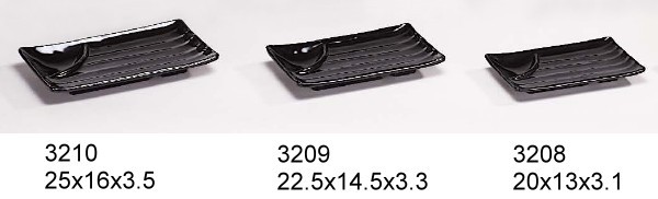 利泰實業廠 - 美耐皿長方盤 / 美耐皿盤子 / 美耐皿餐盤 / 美耐皿餐具 / 美耐皿碗 黑色系列 尺寸: 3207 (28 x 11 x 2.8cm) 3207-1 (33 x 13 x 2cm) **款式有乳白素色系列、瓷白加金系列 品質特性 :