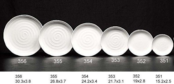 利泰實業廠 - 美耐皿和風圓盤 / 美耐皿盤子 / 美耐皿餐盤 / 美耐皿餐具 / 美耐皿碗 / 美耐皿食具 乳白素色系列 尺寸: 6" 和風圓盤 - 351 (15.2x2.5cm) 7.5" 和風圓盤 - 352 (19x2.8cm) 8.5" 和風圓盤 - 353 (21.7x3.1cm) 9.5" 和風圓盤 - 354 (24.2x3.4cm) 10.5" 和風圓盤 - 355 (26.8x3.7cm) 12" 和風圓盤 - 356 (30.3x3.8cm) 13" 和風圓盤 - 357 (33x3.8cm) 15" 和風圓盤 - 359 (38x4.2cm) 17" 和風圓盤 - 359 (43x4.3cm) **款式有黑色系列、瓷白加金系列、秋草系列 品質特性 :