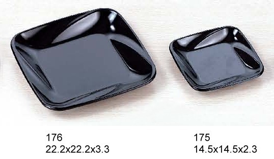 利泰實業廠 - 美耐皿四方盤 / 美耐皿盤子 / 美耐皿餐盤 / 美耐皿餐具 / 美耐皿碗 / 美耐皿食具 黑色系列 尺寸: 175 (14.5 x 14.5 x 2.3cm) 176 (22.2 x 22.2 x 3.3cm) *款式有乳白素色系列、瓷白加金系列 品質特性 :