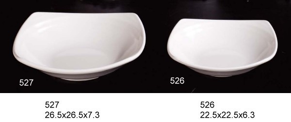 利泰實業廠 - 美耐皿方形湯碗 / 美耐皿盤子 / 美耐皿餐盤 / 美耐皿餐具 / 美耐皿碗 / 美耐皿食具 磁白加金系列 尺寸: 526 (22.5 x 22.5 x 6.3cm) 527 (26.5 x26.5 x 7.3cm) **款式有乳白素色系列、黑色系列 品質特性 :