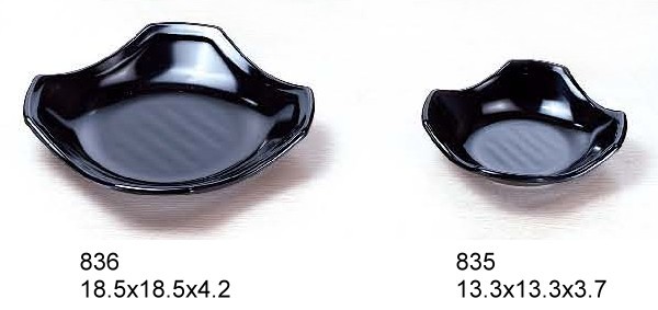 利泰實業廠 - 美耐皿四方菜盤 / 美耐皿盤子 / 美耐皿餐盤 / 美耐皿餐具 / 美耐皿碗 / 美耐皿食具 黑色系列 尺寸: 835 (13.3 x 13.3 x 3.7cm) 836 (18.5 x 18.5 x 4.2cm) **款式有瓷白加金系列 品質特性 :