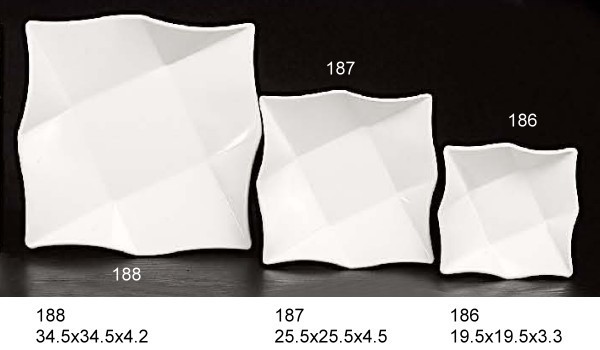 利泰實業廠 - 美耐皿深中井盤 / 美耐皿盤子 / 美耐皿餐盤 / 美耐皿餐具 / 美耐皿碗 / 美耐皿食具 乳白素色系列 尺寸: 186 (19.5 x 19.5 x 3.3cm) 186-1 (23 x 3 x 4.3cm) 187 (25.5 x 25.5 x 4.5cm) 188 (34.5 x 34.5 x 4.2cm) *另有 黑色系列 、瓷白加金系列 品質特性 :