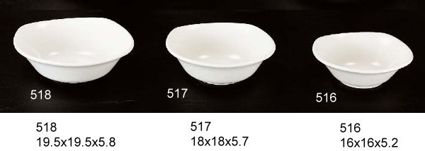 利泰實業廠 - 美耐皿方形湯碗 / 美耐皿盤子 / 美耐皿餐盤 / 美耐皿餐具 / 美耐皿碗 / 美耐皿食具 乳白素色系列 尺寸: 516 (16 x 16 x 5.2cm) 517 (18 x 18 x 5.7cm) 518 (19.5 x 19.5 x 5.8cm) **款式有黑色系列、瓷白加金系列 品質特性 :