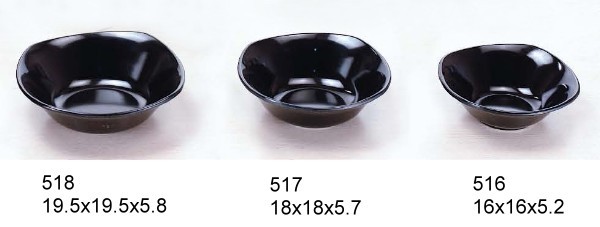 利泰實業廠 - 美耐皿方形湯碗 / 美耐皿盤子 / 美耐皿餐盤 / 美耐皿餐具 / 美耐皿碗 / 美耐皿食具 黑色系列 尺寸: 516 (16 x 16 x 5.2cm) 517 (18 x 18 x 5.7cm) 518 (19.5 x 19.5 x 5.8cm) *款式有乳白素色系列、瓷白加金系列 品質特性 :