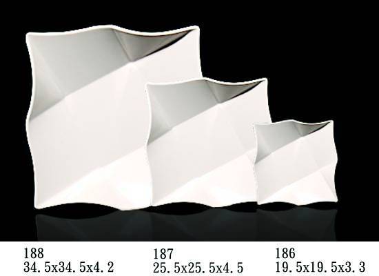 186 (19.5 x 19.5 x 3.3cm) 186-1 (23 x 3 x 4.3cm) 187 (25.5 x 25.5 x 4.5cm) 188 (34.5 x 34.5 x 4.2cm) *另有乳白素色、黑色系列