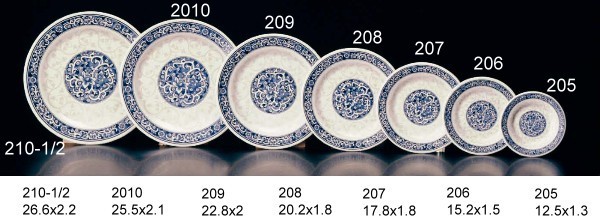 利泰實業廠 - 美耐皿肉盤 / 美耐皿盤子 / 美耐皿餐盤 / 美耐皿餐具 / 美耐皿碗 / 美耐皿食具 意祥系列 尺寸: 205 (12.5 x 1.3cm) 206 (15.2 x 1.7cm) 207 (17.8 x 2cm) 208 (20.2 x 2cm) 209 (22.8 x 2.1cm) 210 (25.5 x 2.2cm) 210½ (26.2 x 2.2cm) 212 (30.5 x 2.3cm) 212½ (31.7 x 2.5cm) 213 (33 x 2.8cm) 214 (35.5 x 3cm) 216 (40.3 x 3.9cm) 218 (45.5 x 4.3cm) **款式有乳白素色系列、黑色系列、瓷白加金系列