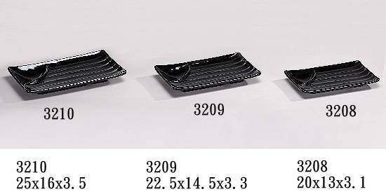 利泰實業廠 - 美耐皿長方燒肉盤 / 美耐皿盤子 / 美耐皿餐盤 / 美耐皿餐具 / 美耐皿碗 / 美耐皿食具 黑色系列 尺寸: 3208 (20 x 13 x 3.1cm) 3209 (22.5 x14.5 x 3.3cm) 3210 (25 x16 x 3.5cm) *款式有乳白素色系列、一番系列、瓷白加金系列 品質特性 :