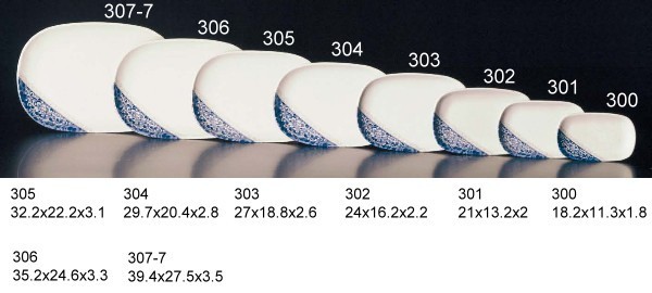 利泰實業廠 - 美耐皿長方皿 / 美耐皿盤子 / 美耐皿餐盤 / 美耐皿餐具 / 美耐皿碗 意祥系列 尺寸: 300 (18.2 x 11.3 x 1.8cm) 301 (21 x 13.2 x 2cm) 302 (24 x 16.2 x 2.2cm) 303 (27 x 18.8 x 2.6cm) 304 (29.7 x 20.4 x 2.8cm) 305 (32.2 x 22.2 x 3.1cm) 306 (35.2 x 24.6 x 3.3cm) 306-7 (39.4 x 27.5 x 3.5cm) **款式有乳白素色系列、黑色系列、瓷白加金系列、綠磁系列、秋草系列 品質特性 :